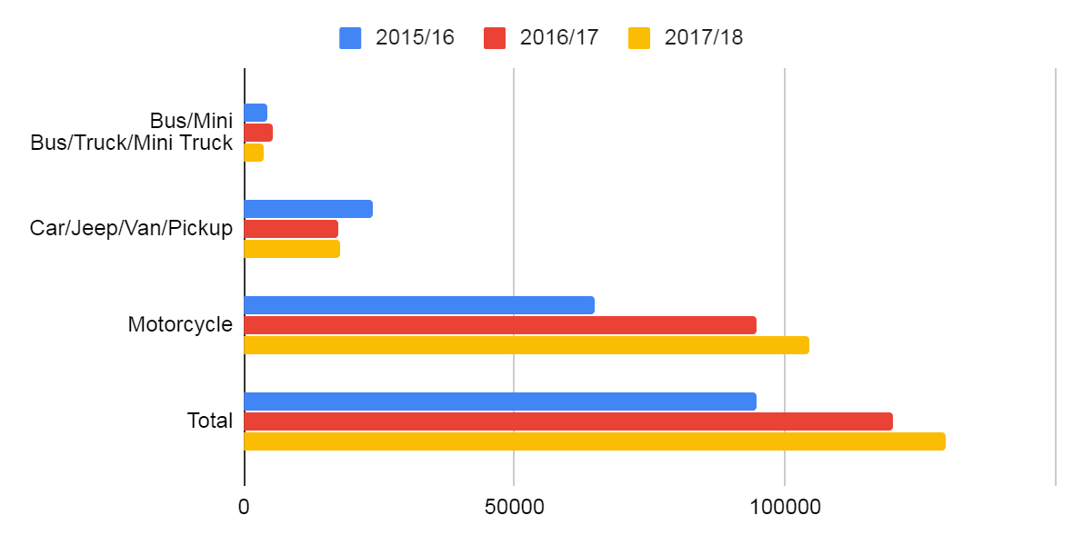 Vehicles Registered in Bagmati Zone, Year: 2015 - 2018