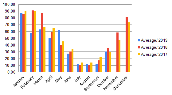 Monthly Average AQI of Kathmandu, Year: 2017- 2019